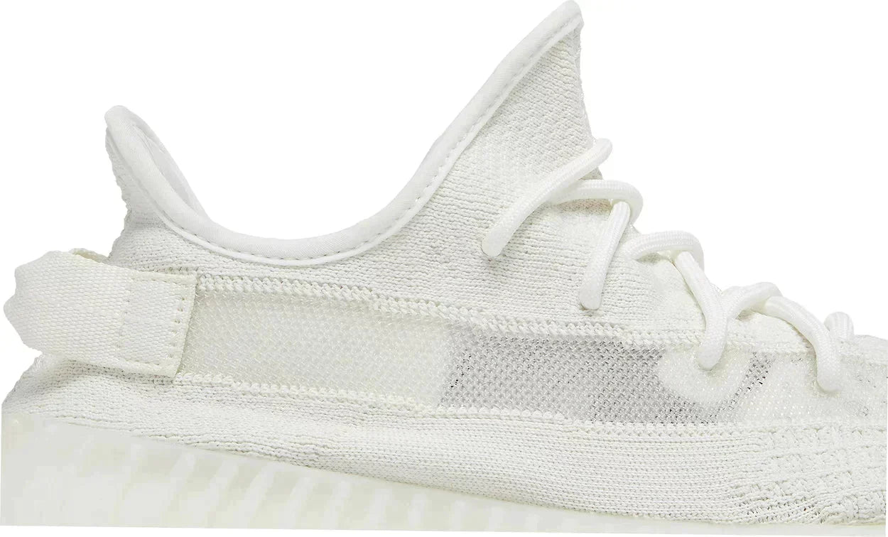 The adidas Yeezy Boost 350 V2 Bone features a triple white Primeknit upper with mesh side stripes and canvas heel tabs. At the base, a semi-translucent sole with Boost technology completes the design.