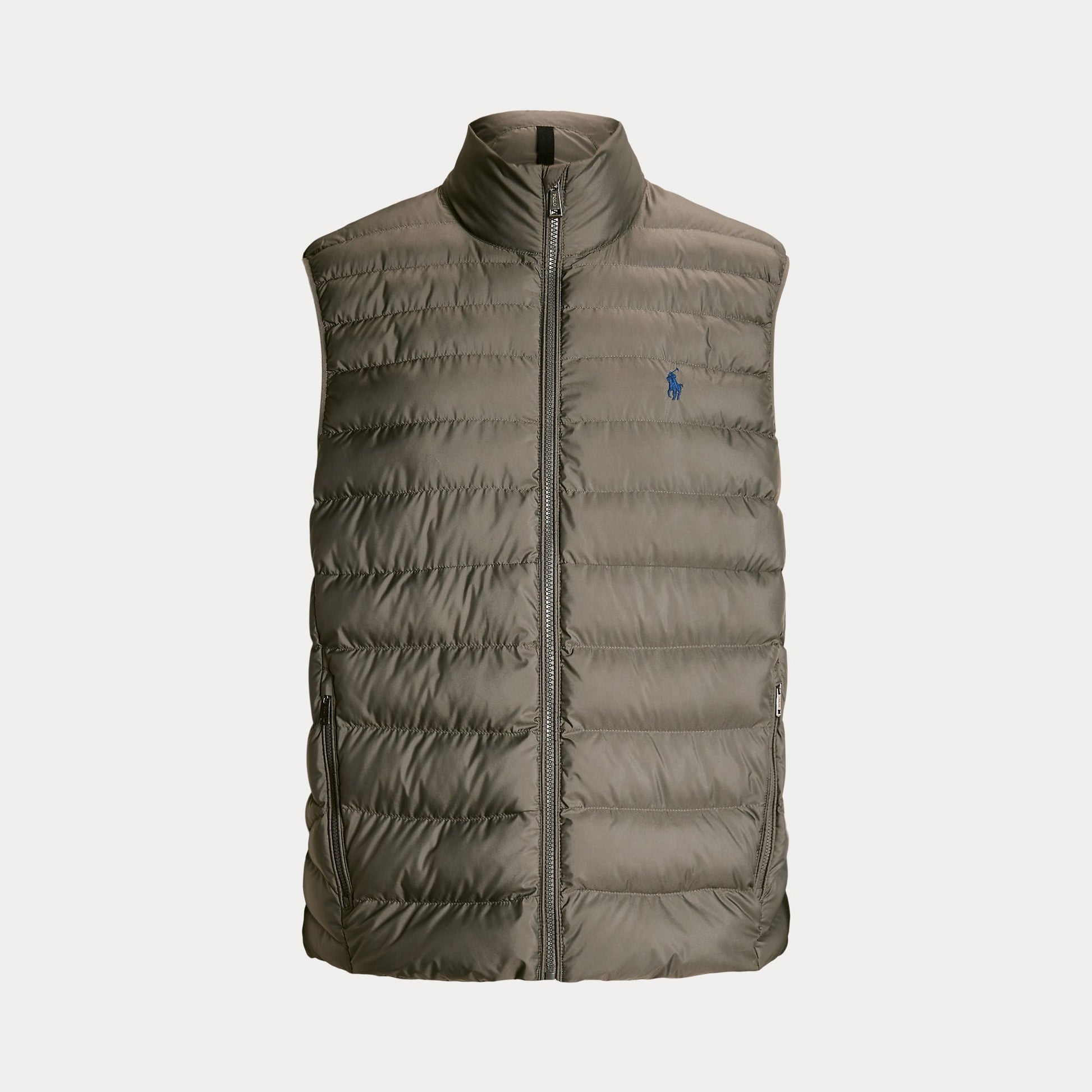 This quilted vest is developed with down-alternative fill and a water-repellent fabric, both of which are made with recycled polyester. It also packs into its own pocket for on-the-go convenience.