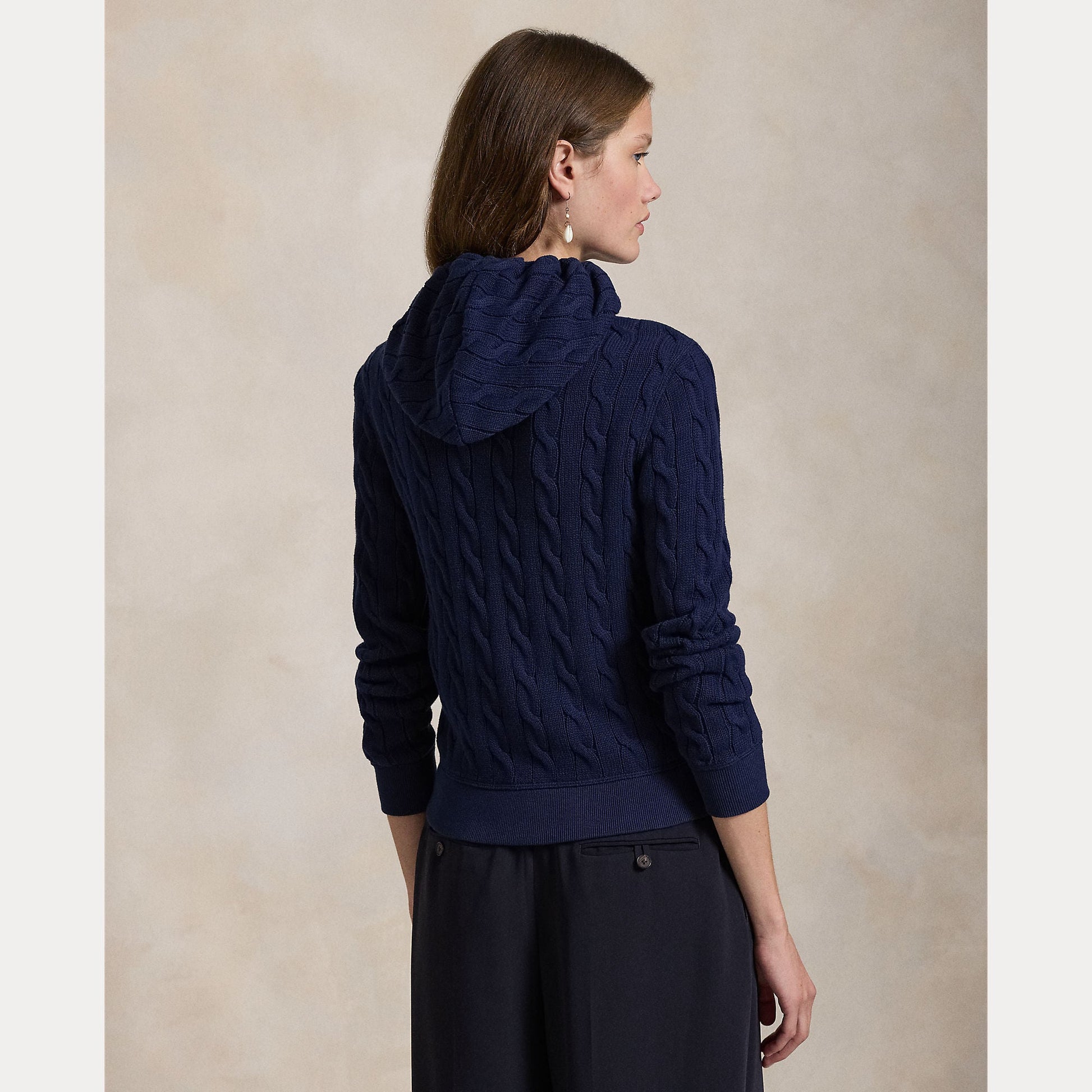 The versatile style of a full-zip hoodie meets Ralph Lauren’s signature cable-knit construction in this cotton layer, which is accented with our embroidered Pony at the chest.