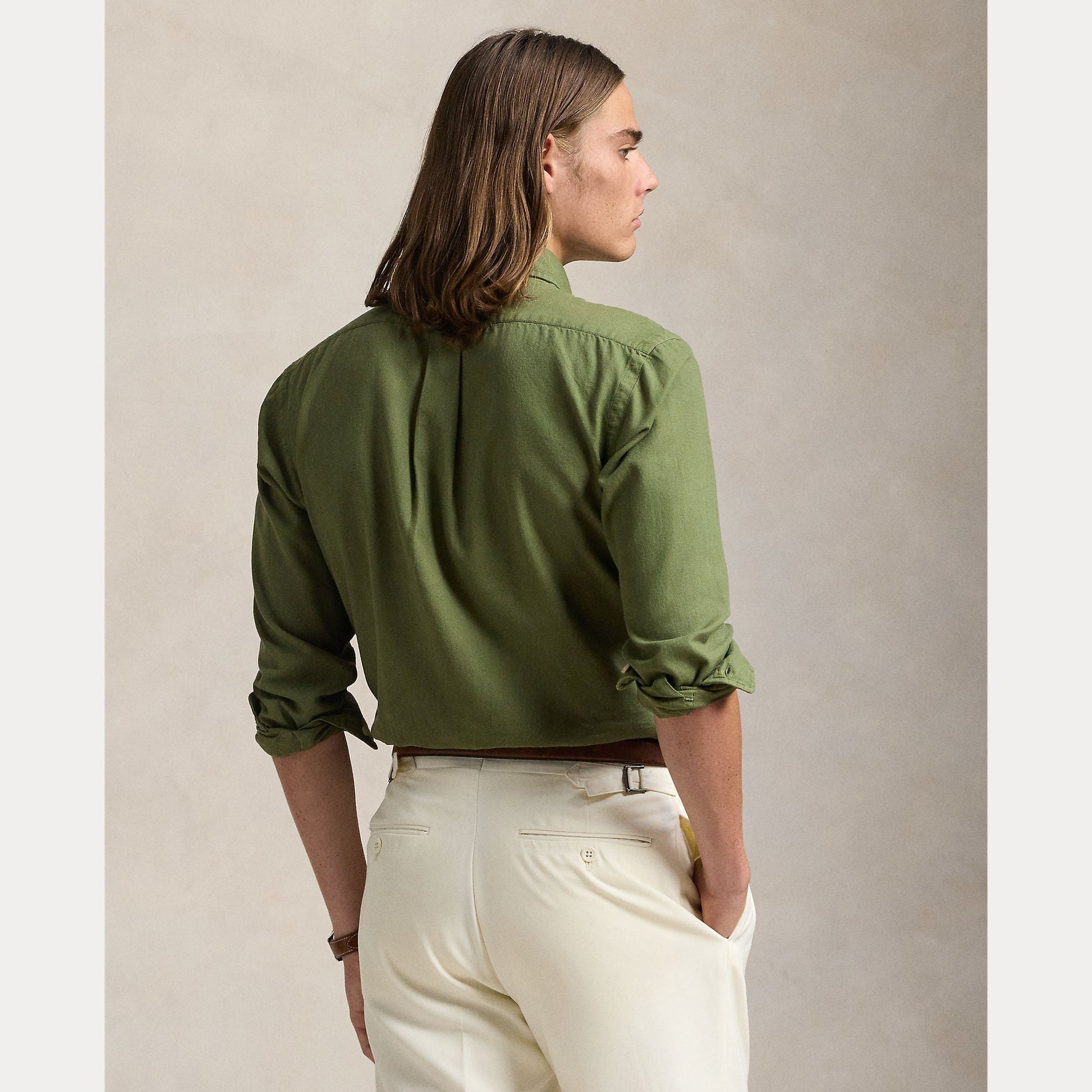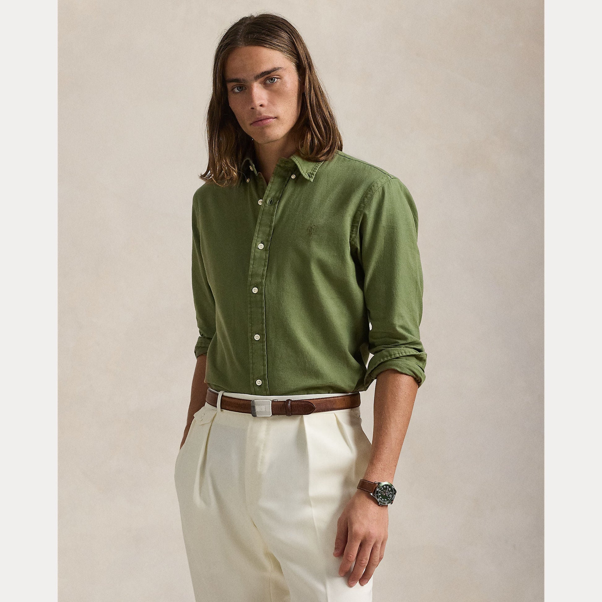 This garment-dyed shirt is crafted with cotton dobby fabric and embroidered with a tonal iteration of our signature Pony.