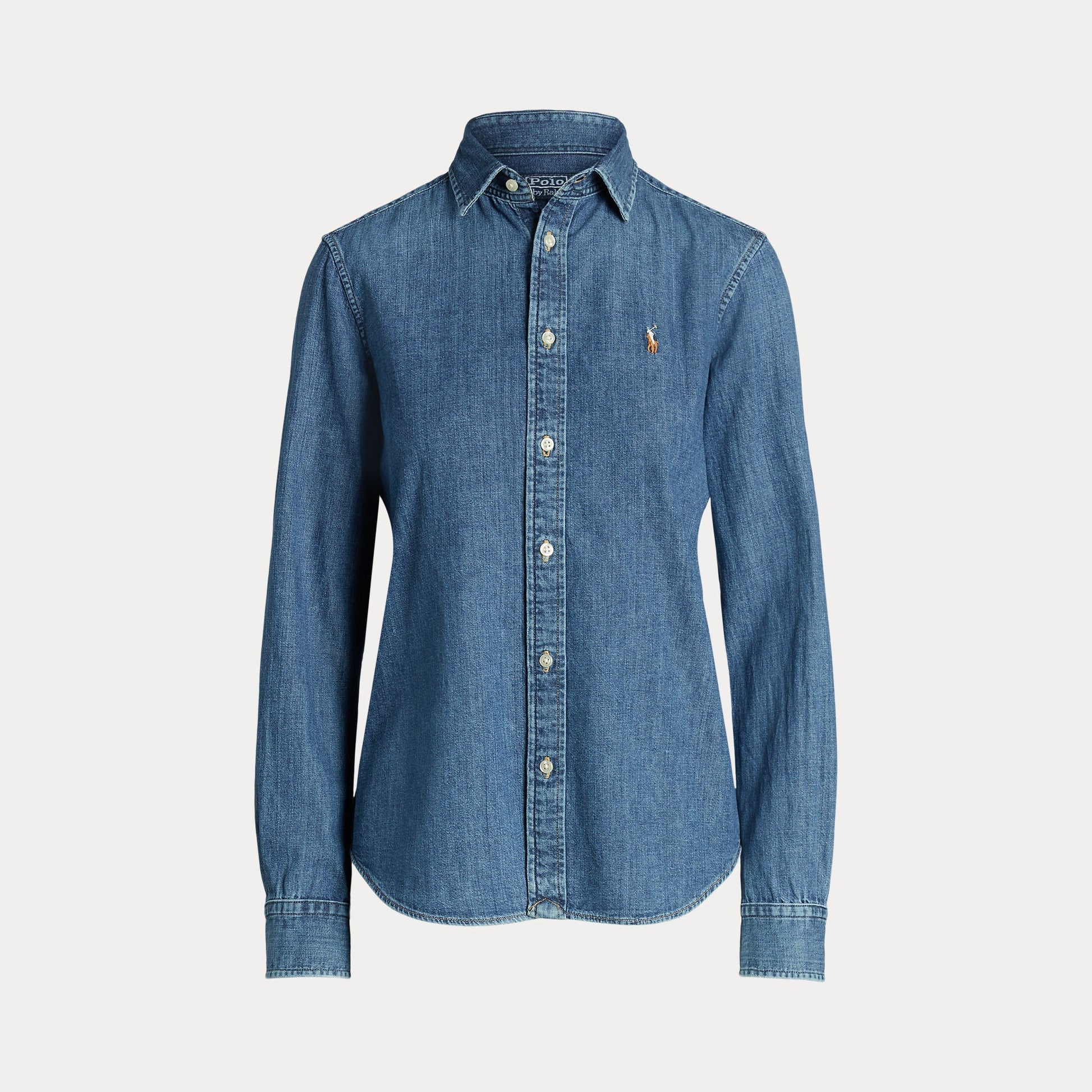 Treated for a soft hand feel, this medium-wash denim shirt is crafted with cotton twill and features hand-sanding to achieve lived-in comfort from day one. It’s meticulously embroidered with our multicolored Pony for an iconic finish.