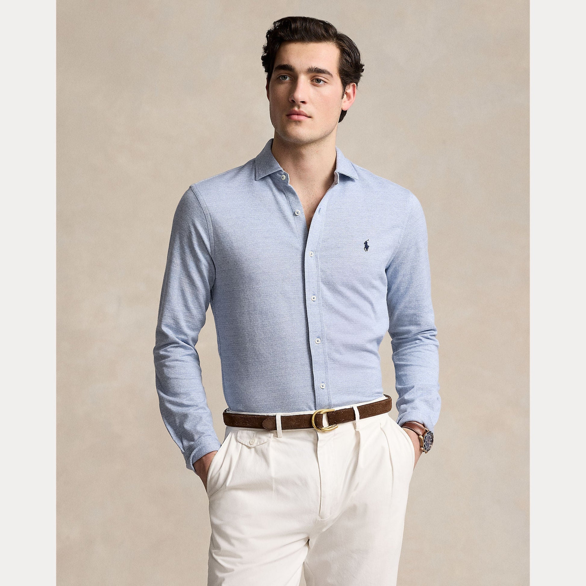 This piece combines the polished look of our signature spread-collar shirt with dot-patterned cotton jersey.