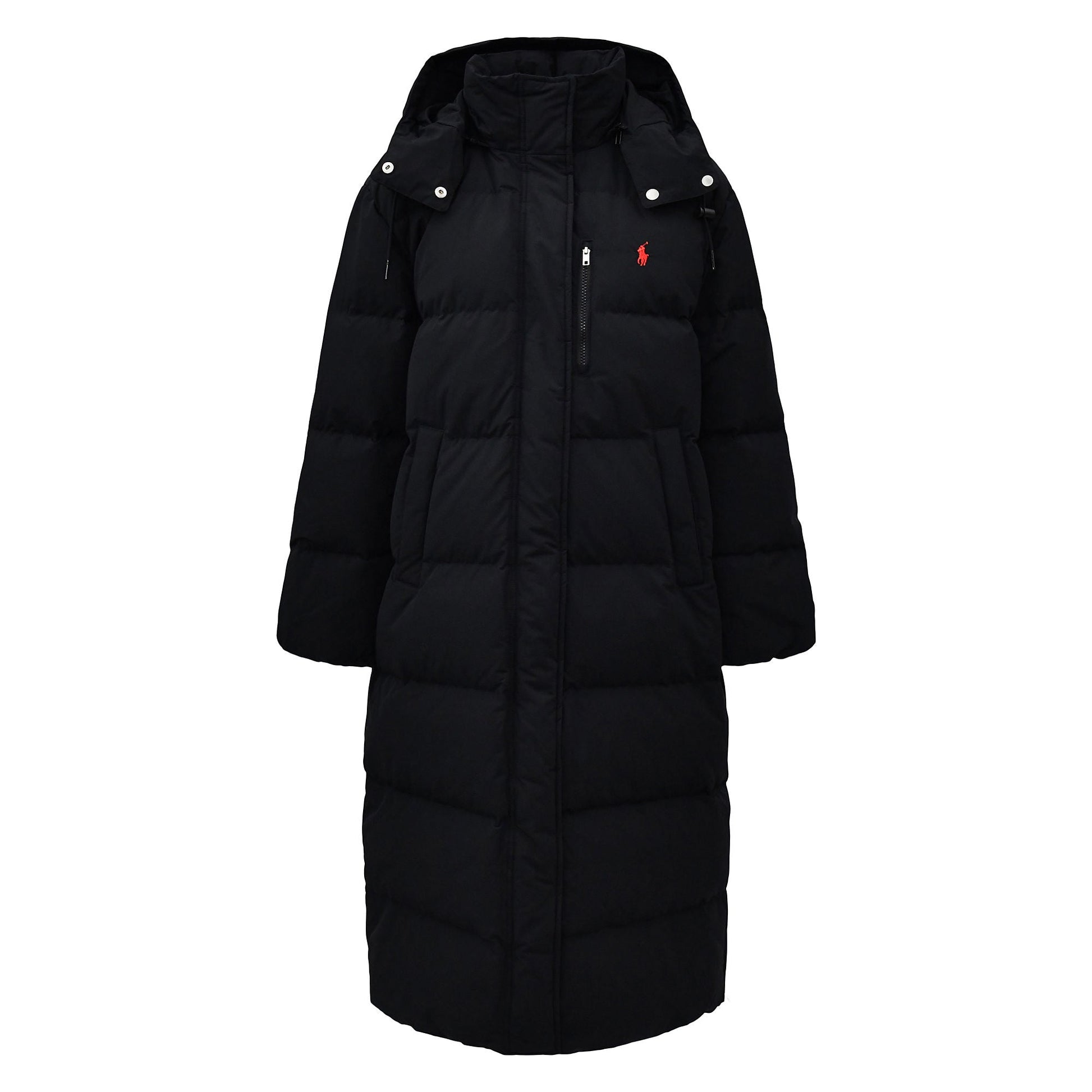 Crafted with water-repellent fabric, this long quilted jacket features a two-way zip closure and 750-fill-power down to help keep you comfortable.