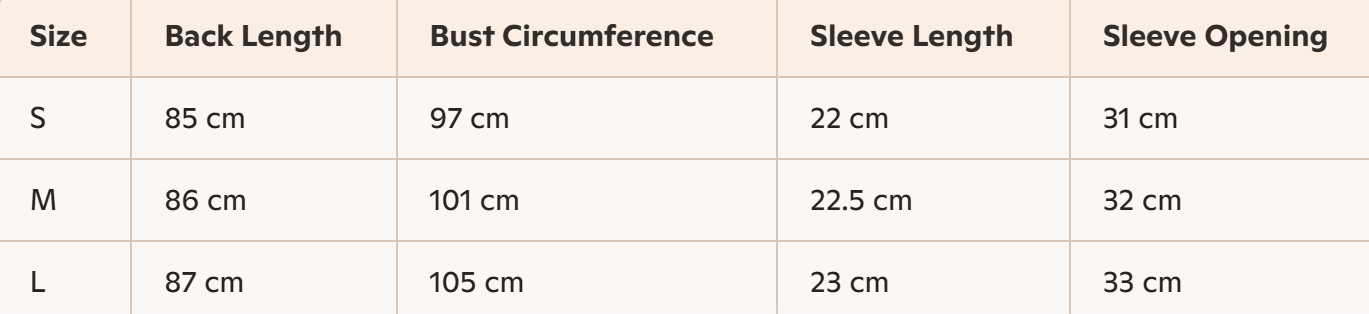 • Size: S, M, L