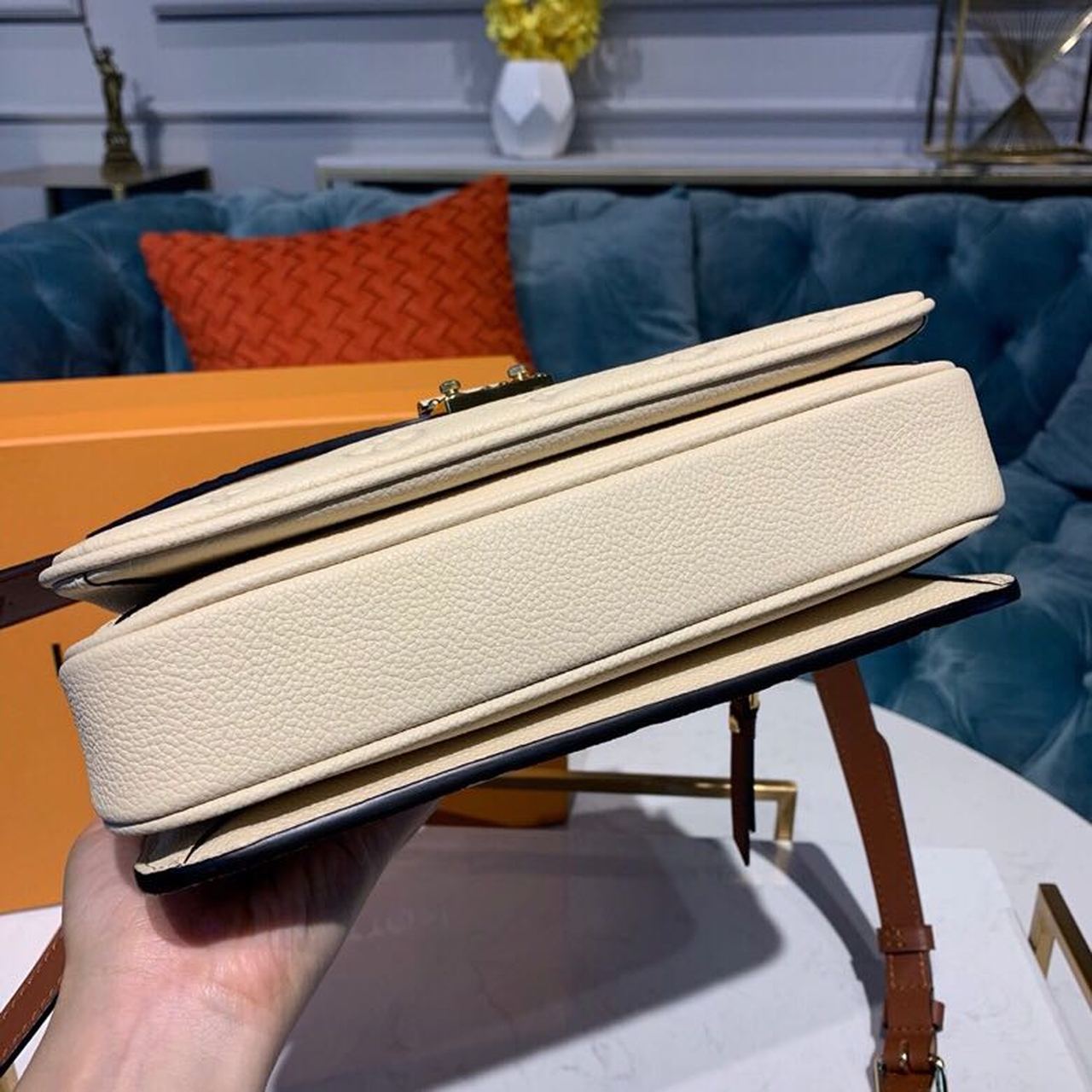 La pochette Métis, dal design compatto e raffinato, è una rivisitazione della classica borsa messenger. L'elegante creazione, realizzata in pelle Monogram Empreinte color beige, è rifinita dalla fodera in microfibra tono su tono. Le parti metalliche dorate e la distintiva chiusura a s, ispirata agli storici bauli della Maison, conferiscono un tocco di modernità all'accessorio.