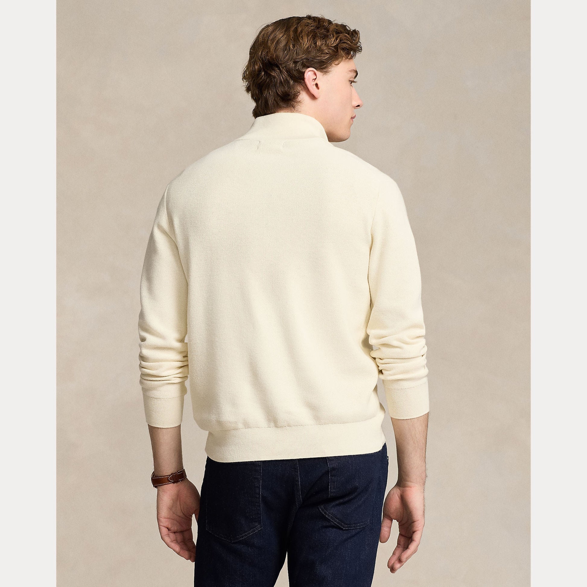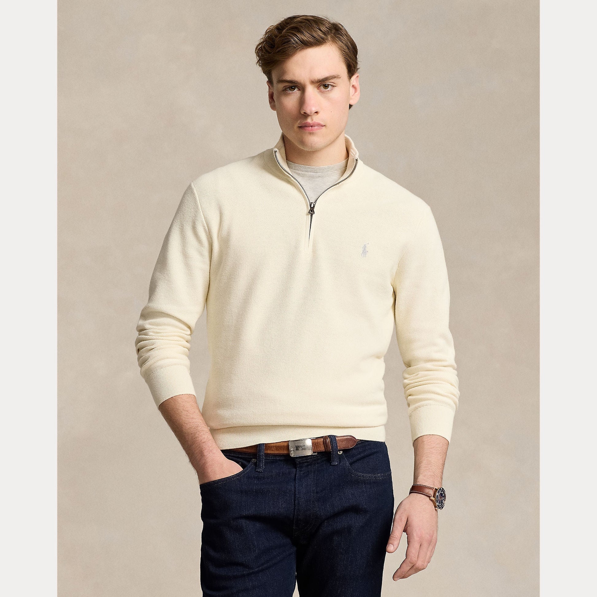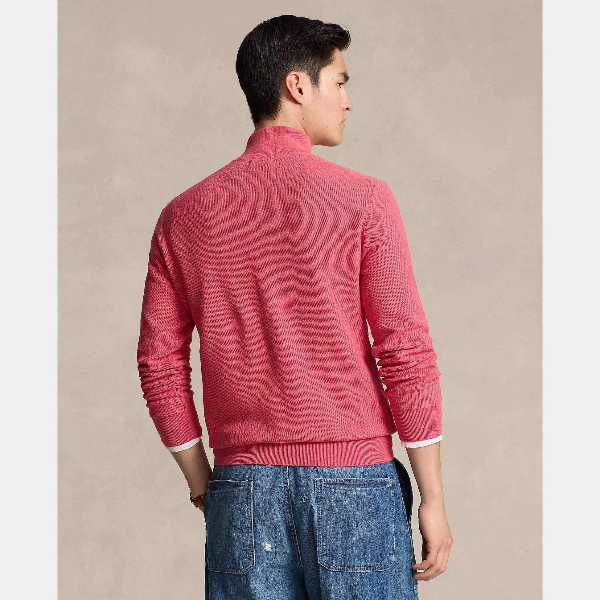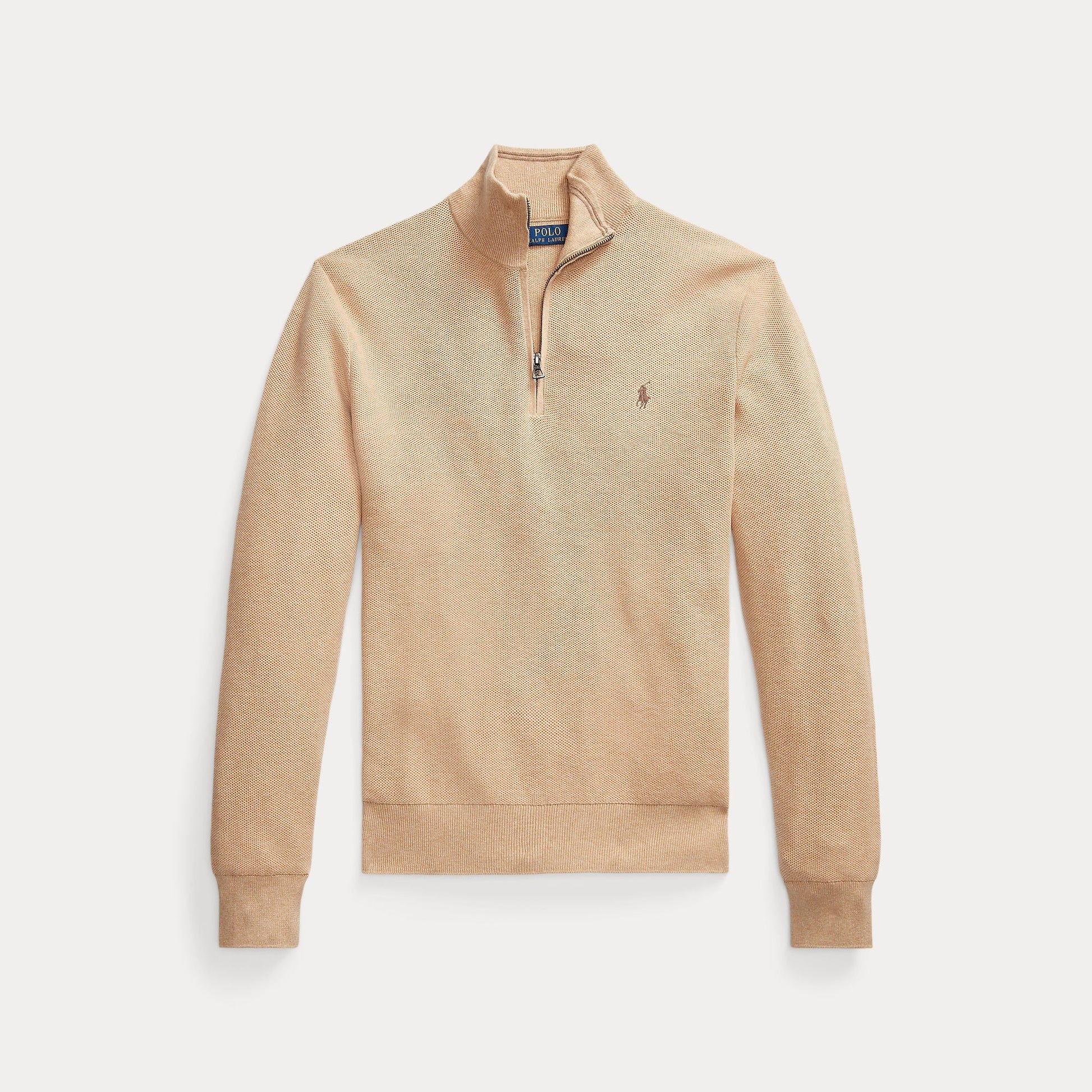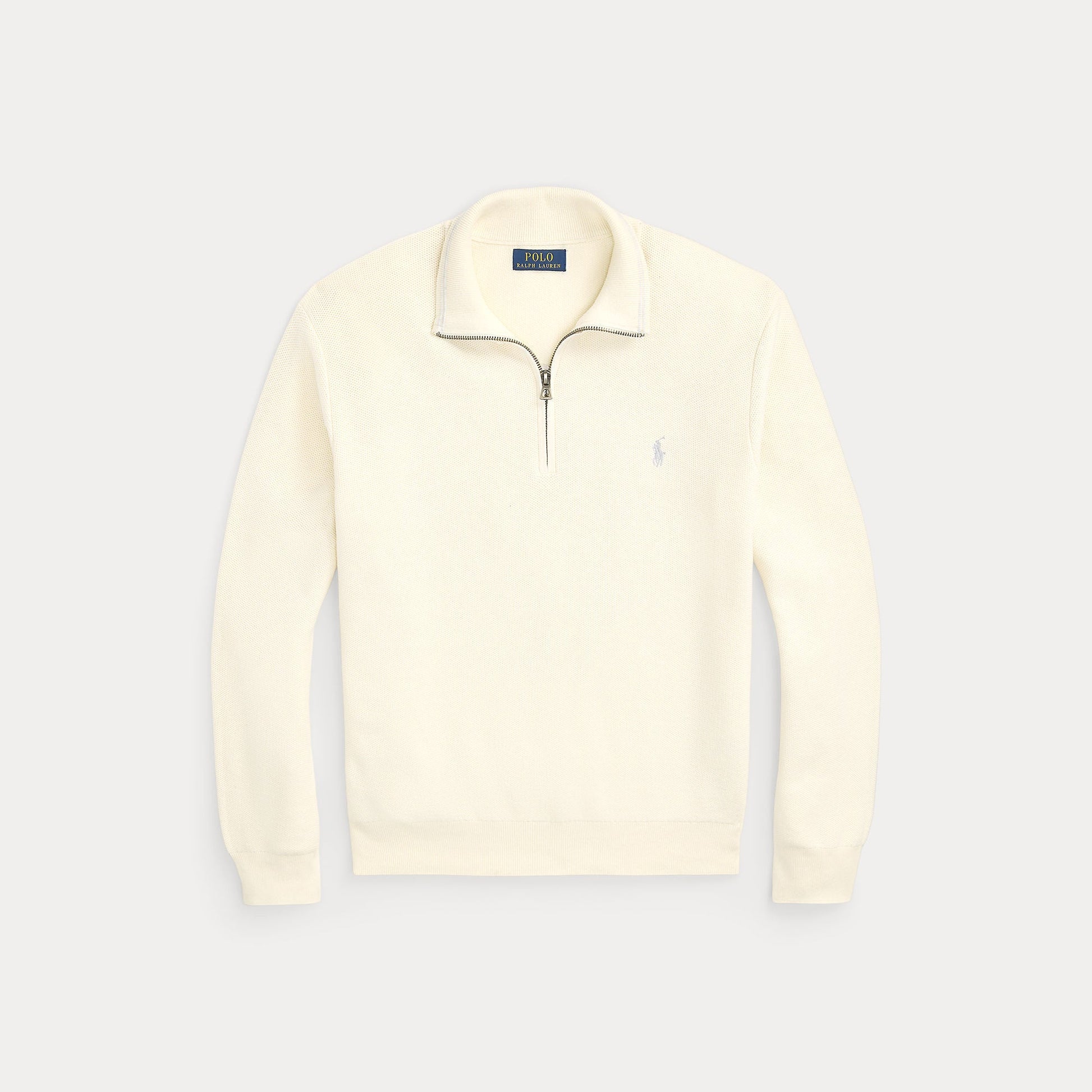 MESH-KNIT COTTON QUARTER-ZIP SWEATER