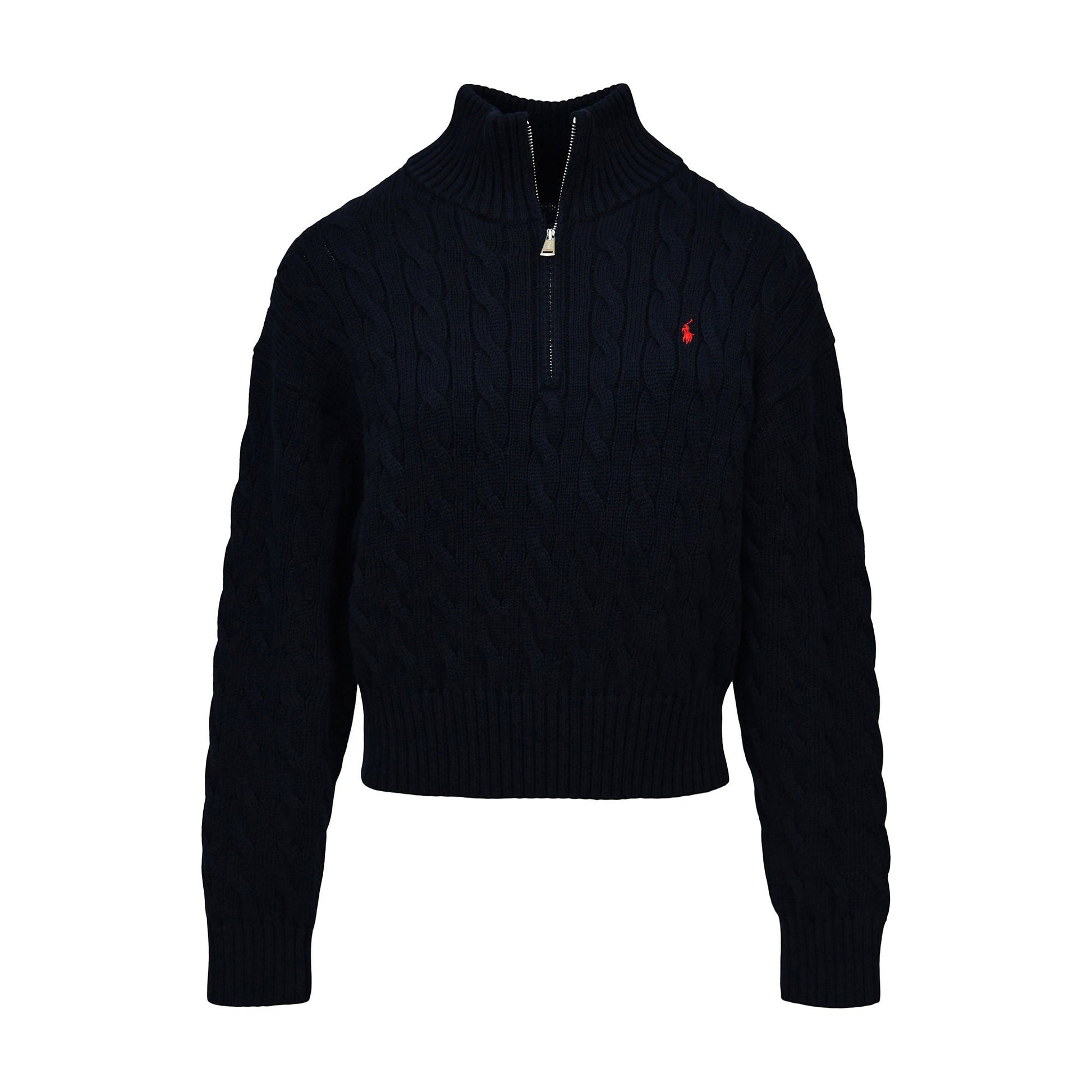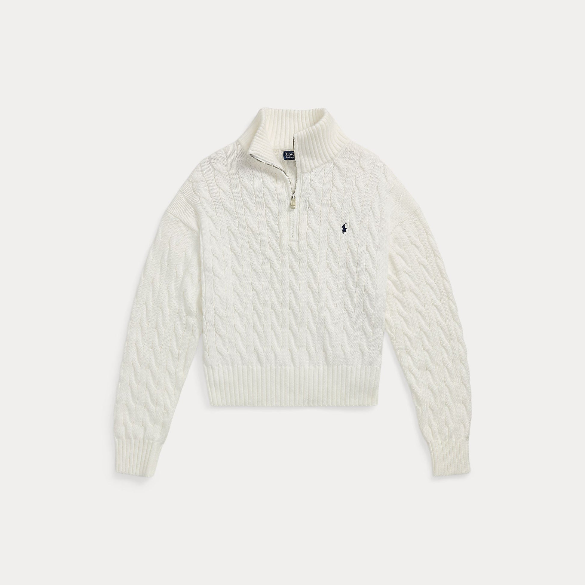 Combining the casual styling of a pullover with our iconic cable-knit construction, this quarter-zip sweater is crafted with chunky cotton yarn and meticulously embroidered with our signature Pony at the chest.