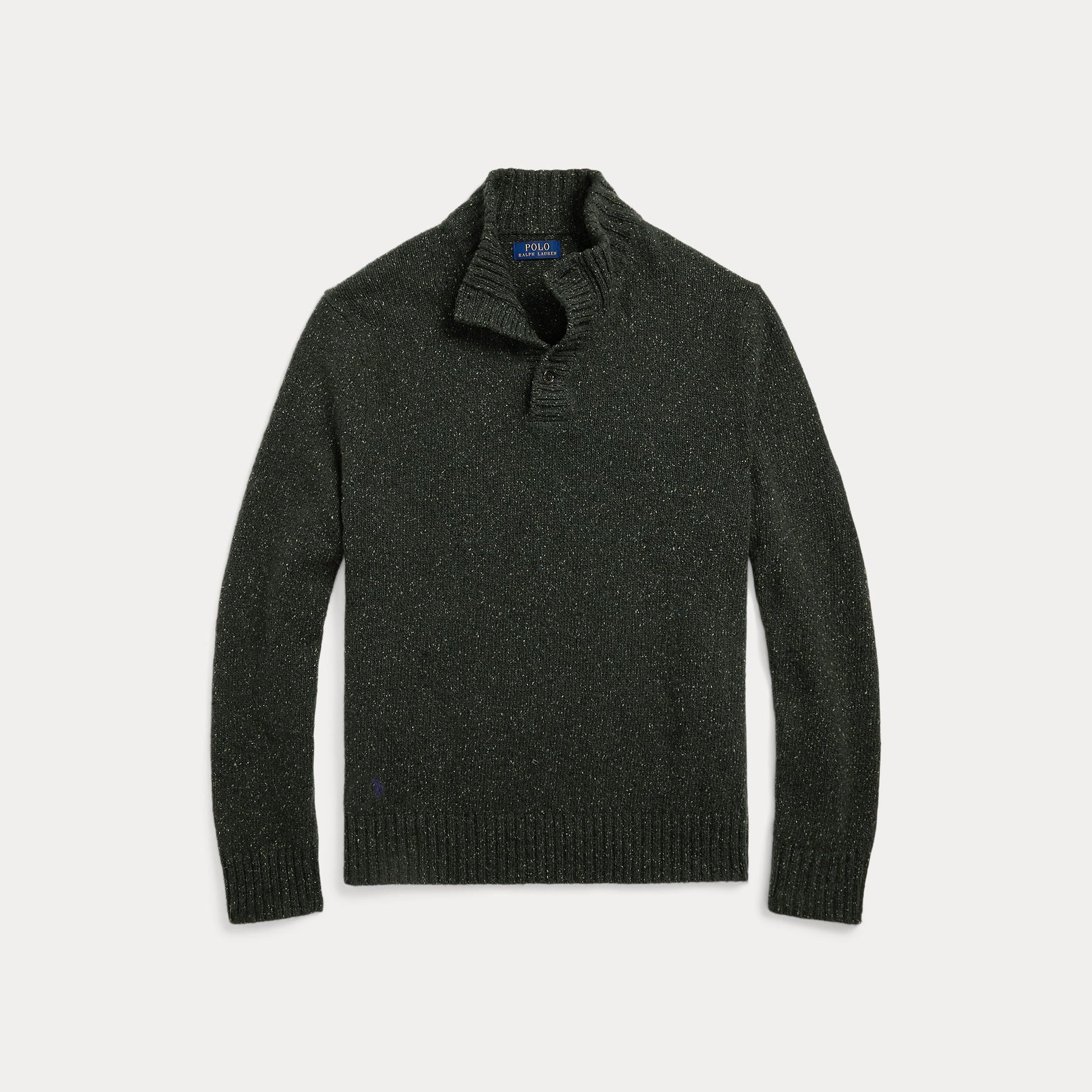 This sweater is knit with Italian wool-blend yarn that is speckled, nodding to the distinct look of Donegal knitwear. At the right hem, it is finished with our signature embroidered Pony.