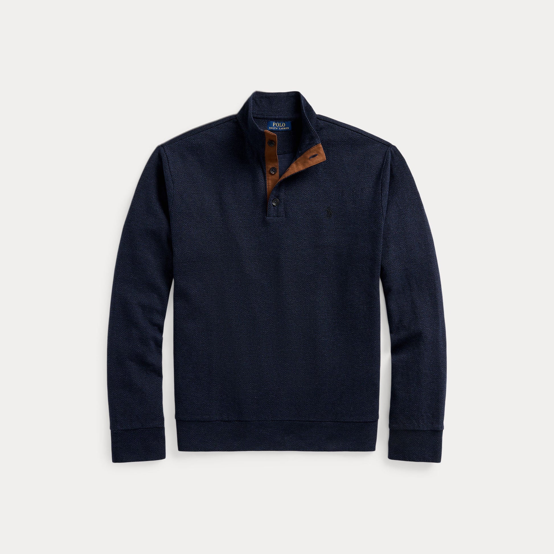 This herringbone-print pullover is made with supersmooth jersey and features our signature embroidered Pony. At the placket, it is finished with faux-suede trim and genuine horn buttons.