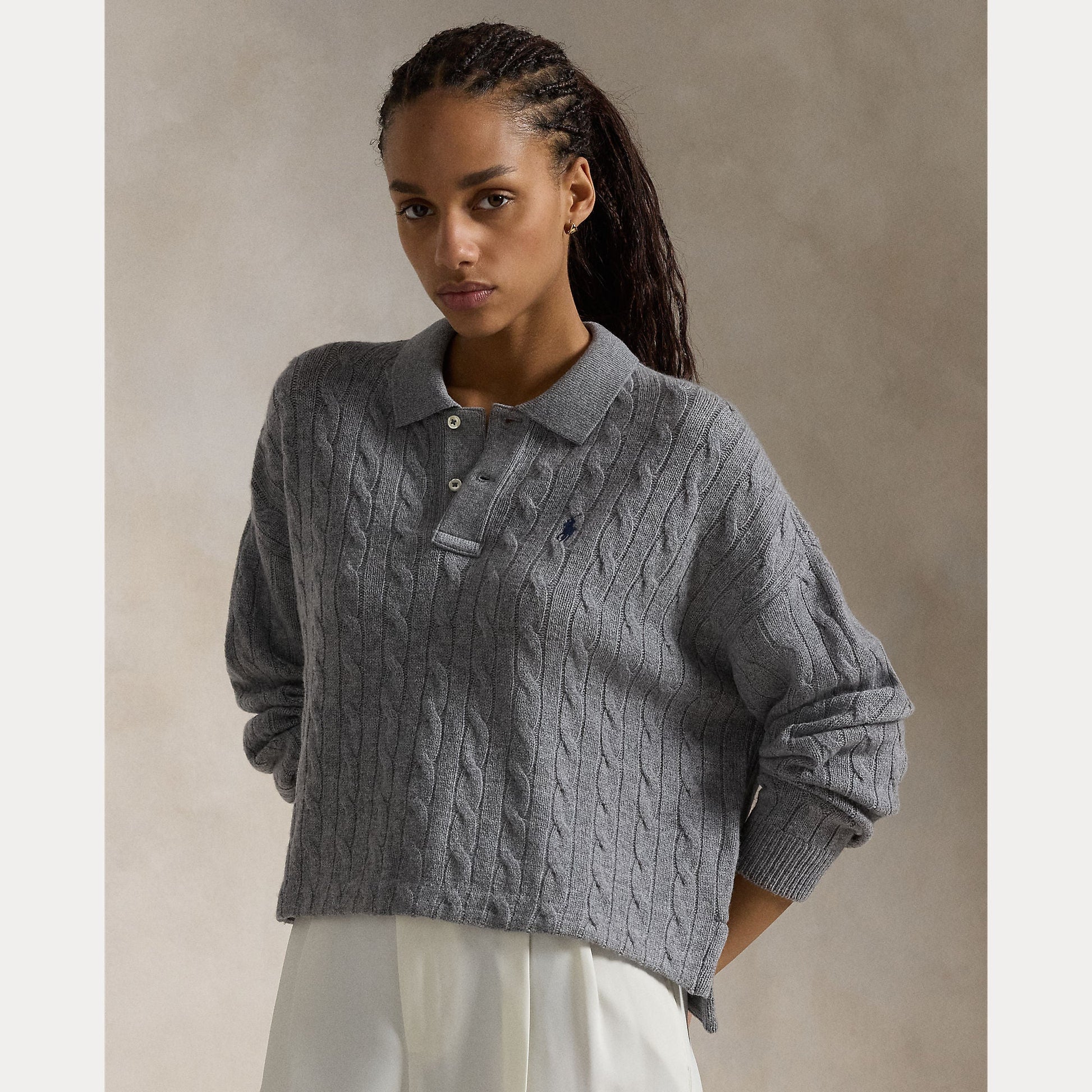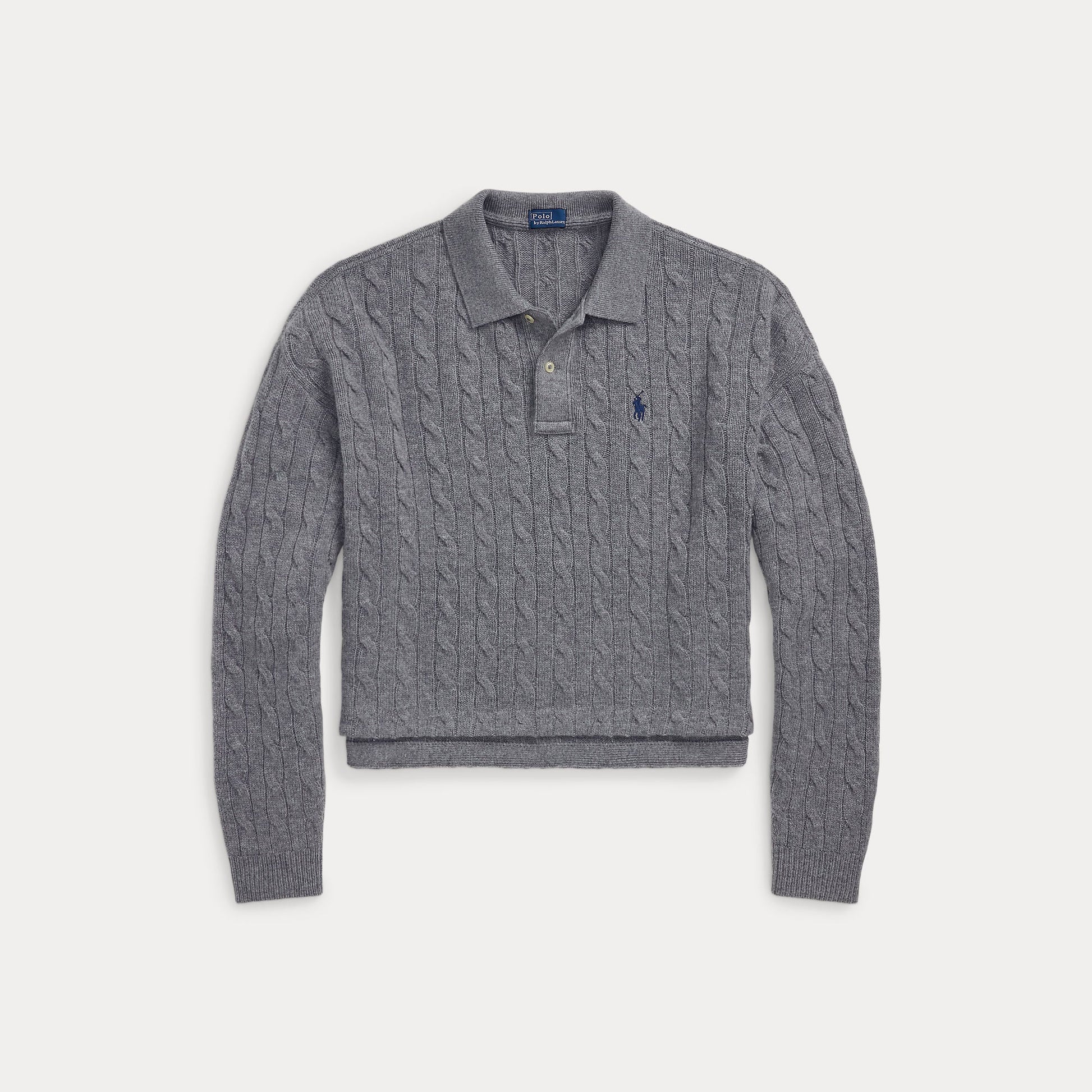 This version of our boxy cable-knit Polo shirt is crafted with a cozy Italian blend featuring wool and carded cashmere and meticulously embroidered with our signature Pony.