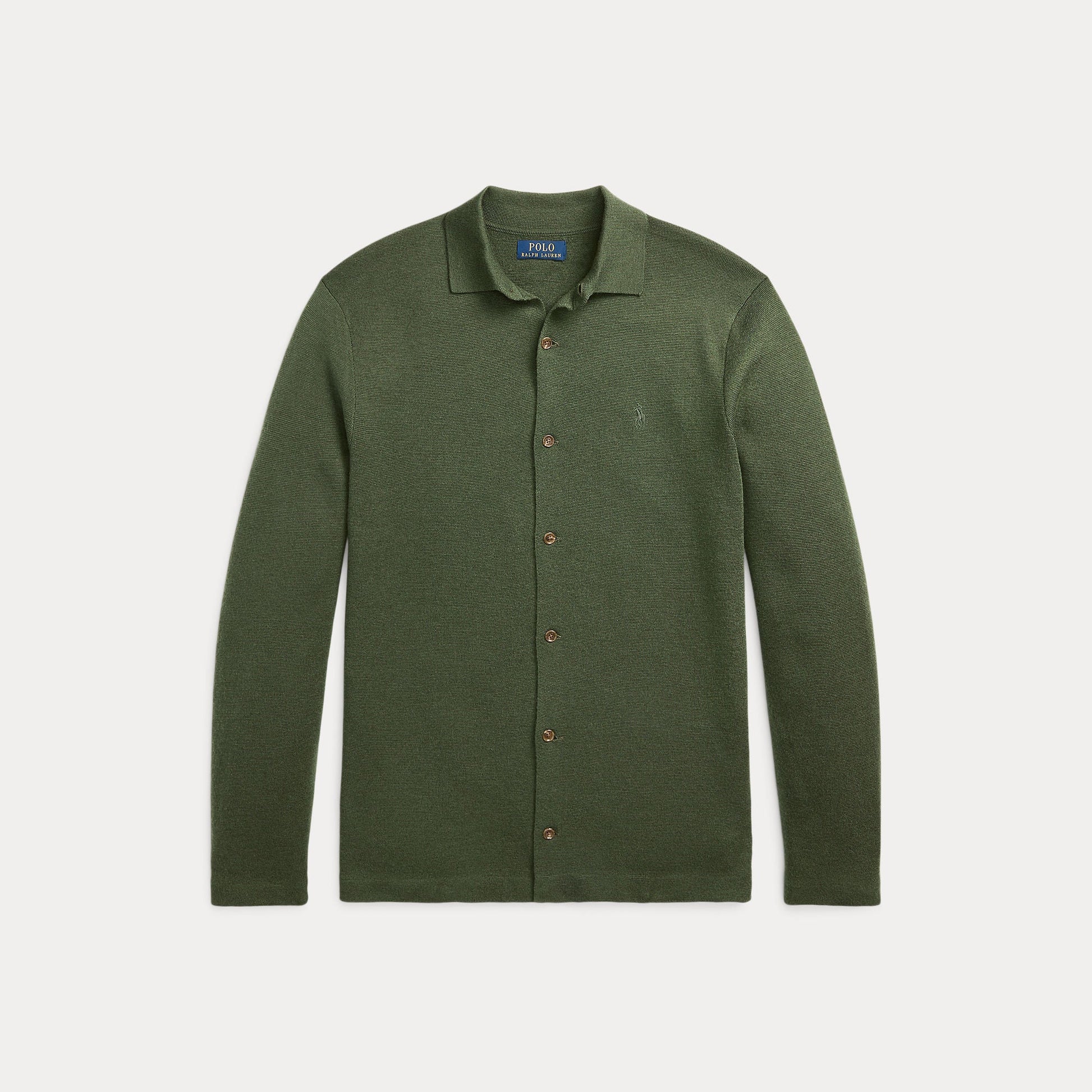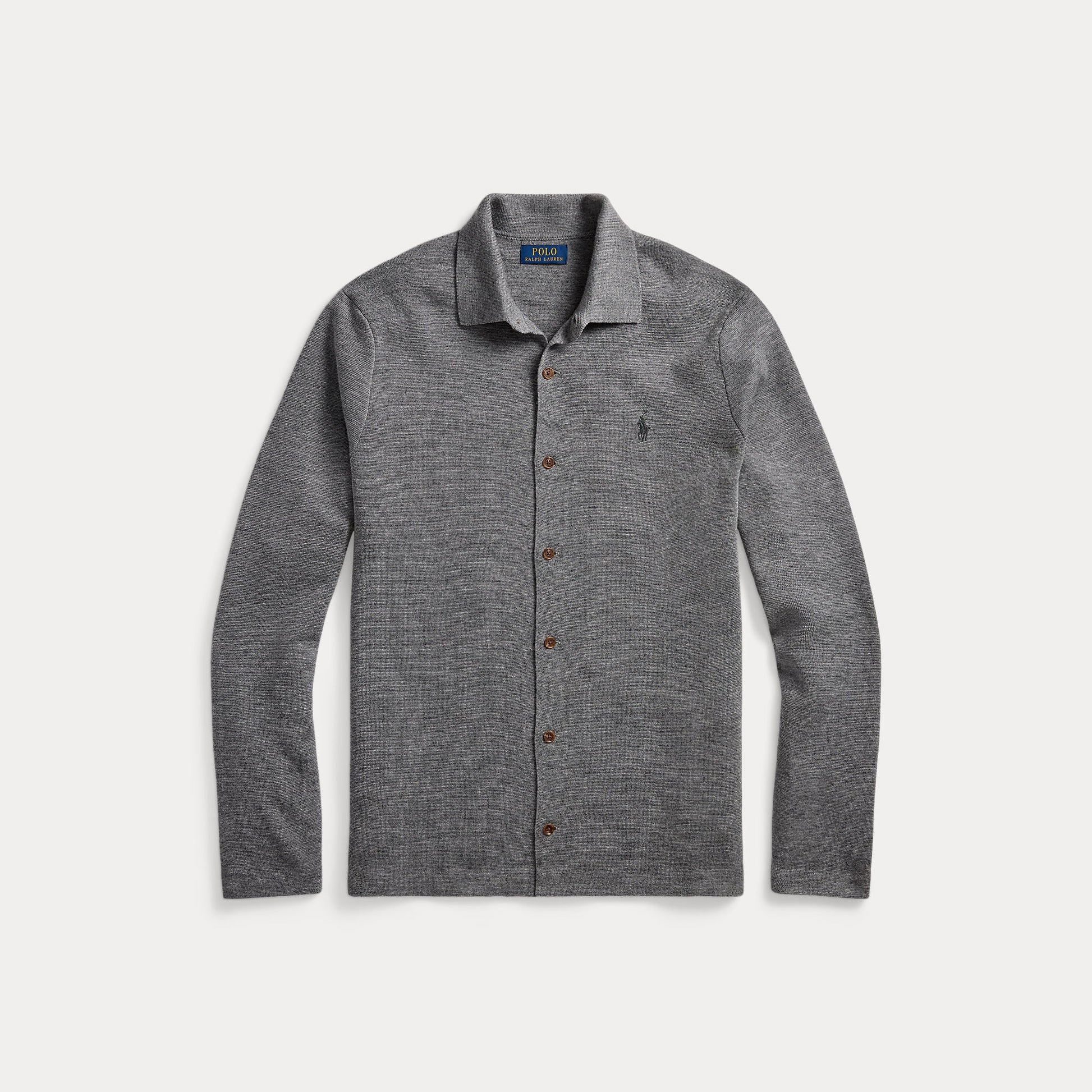 This lightweight layer combines the polished silhouette of our classic spread-collar shirt with the warmth of worsted wool yarn.