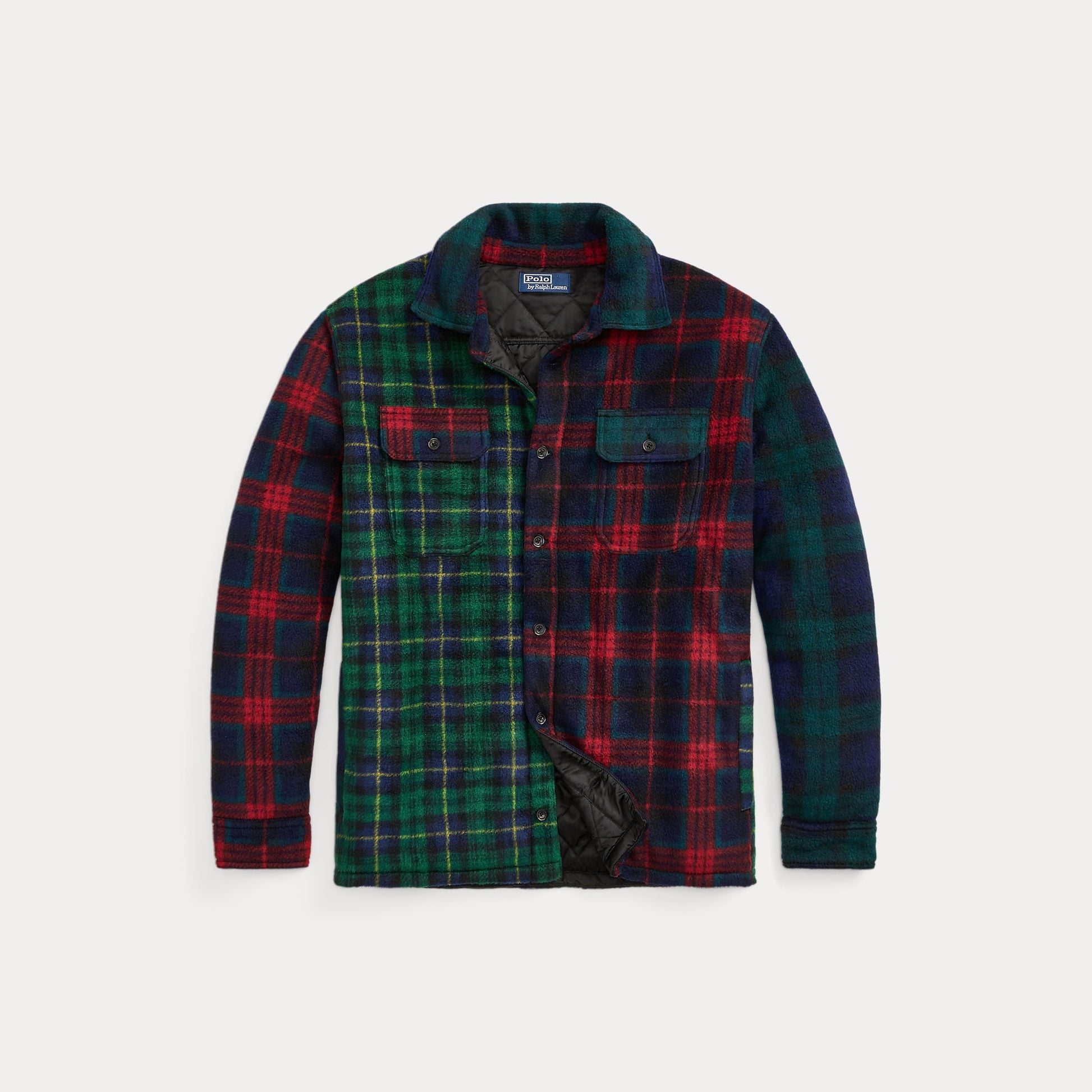 Crafted from supersoft brushed fleece, this vintage-inspired shirt jacket features a patchwork design composed of three different plaids.