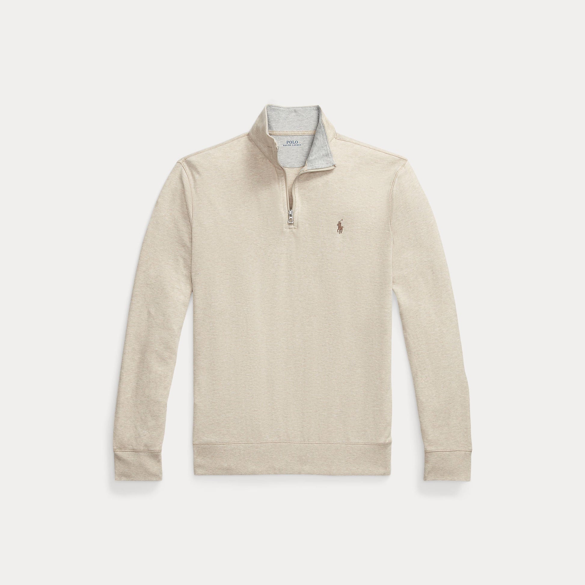This quarter-zip pullover is made with a supersmooth cotton blend and finished with our signature embroidered Pony.