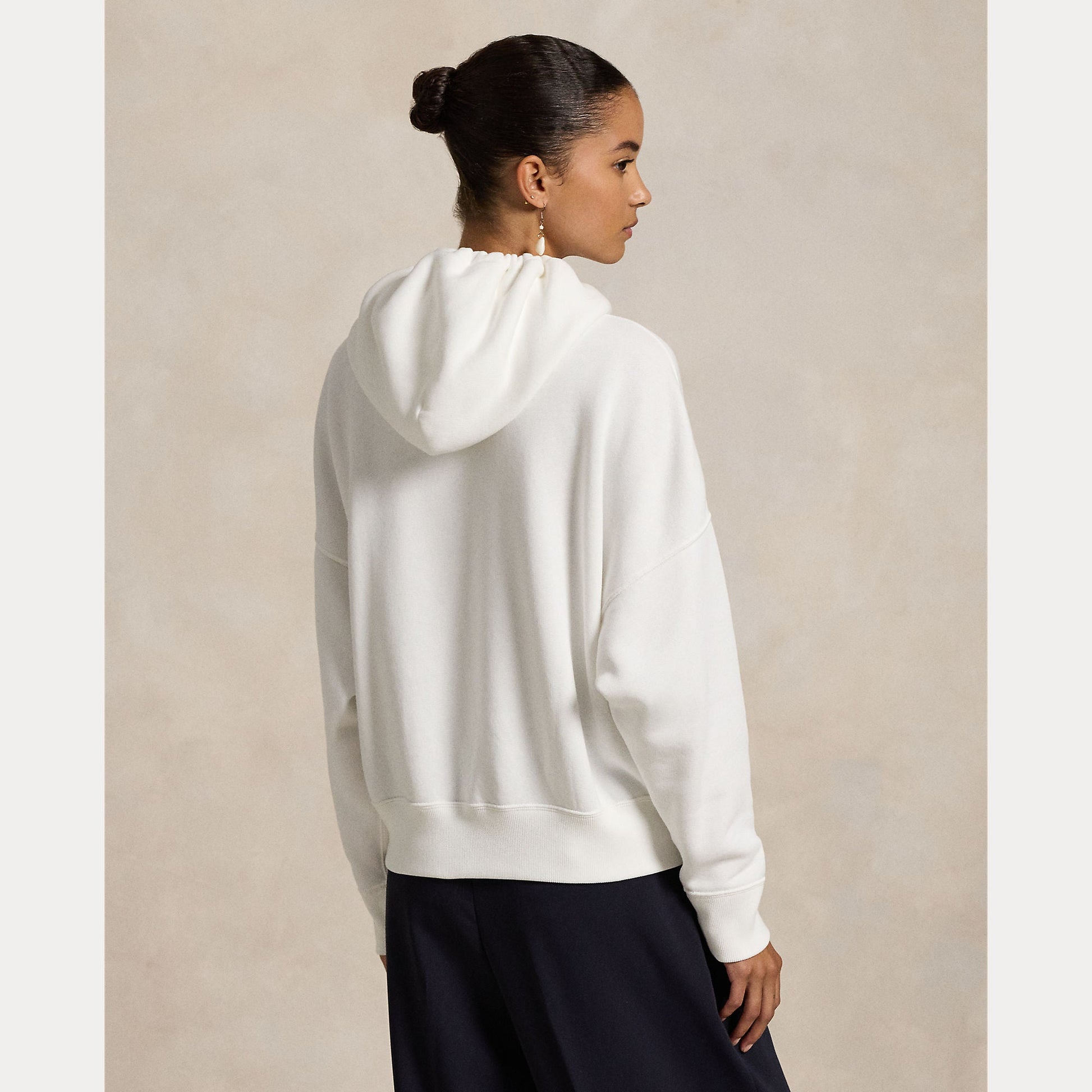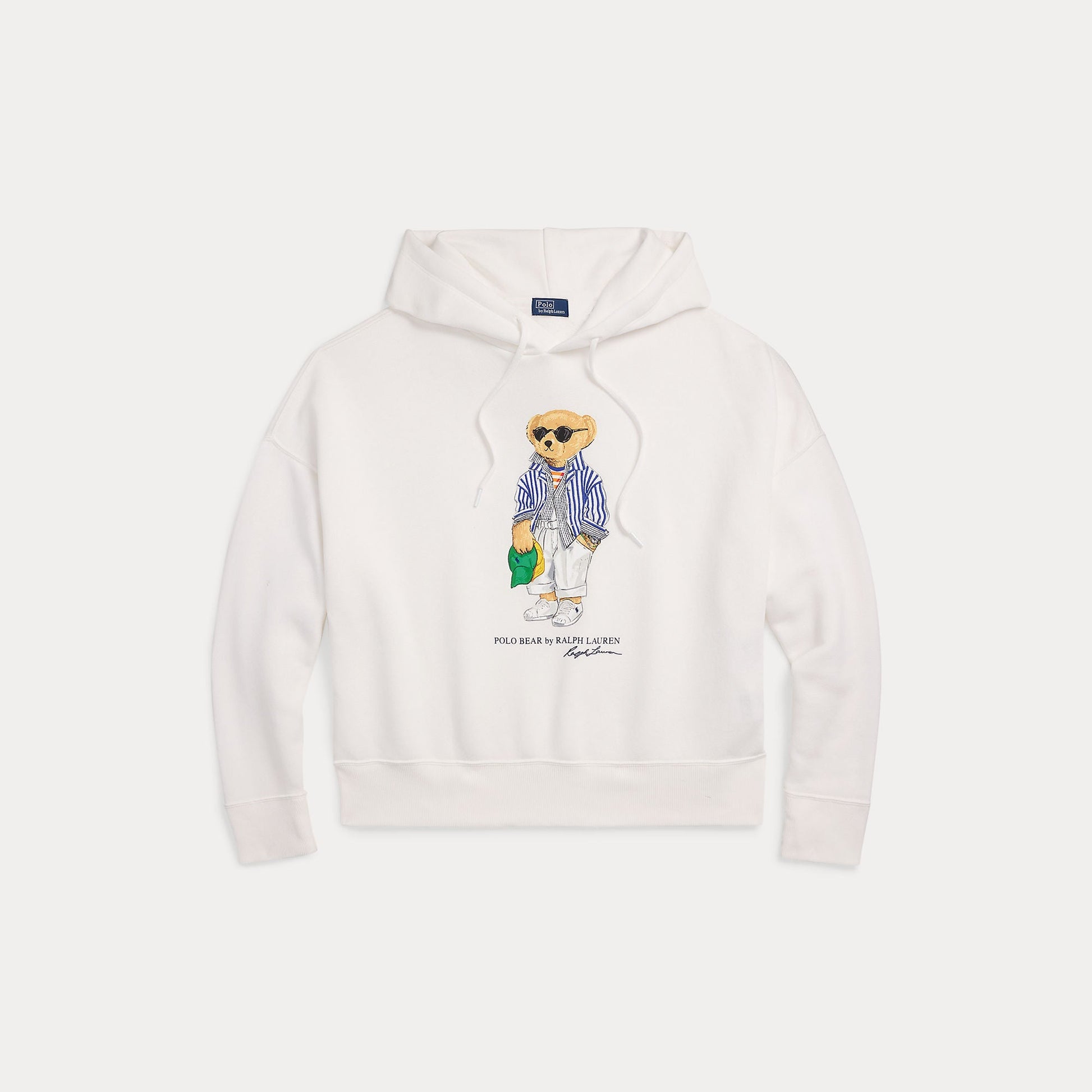 Ralph Lauren’s signature logo and mascot, the Polo Bear, is rubber-printed at the front of this soft fleece hoodie.
