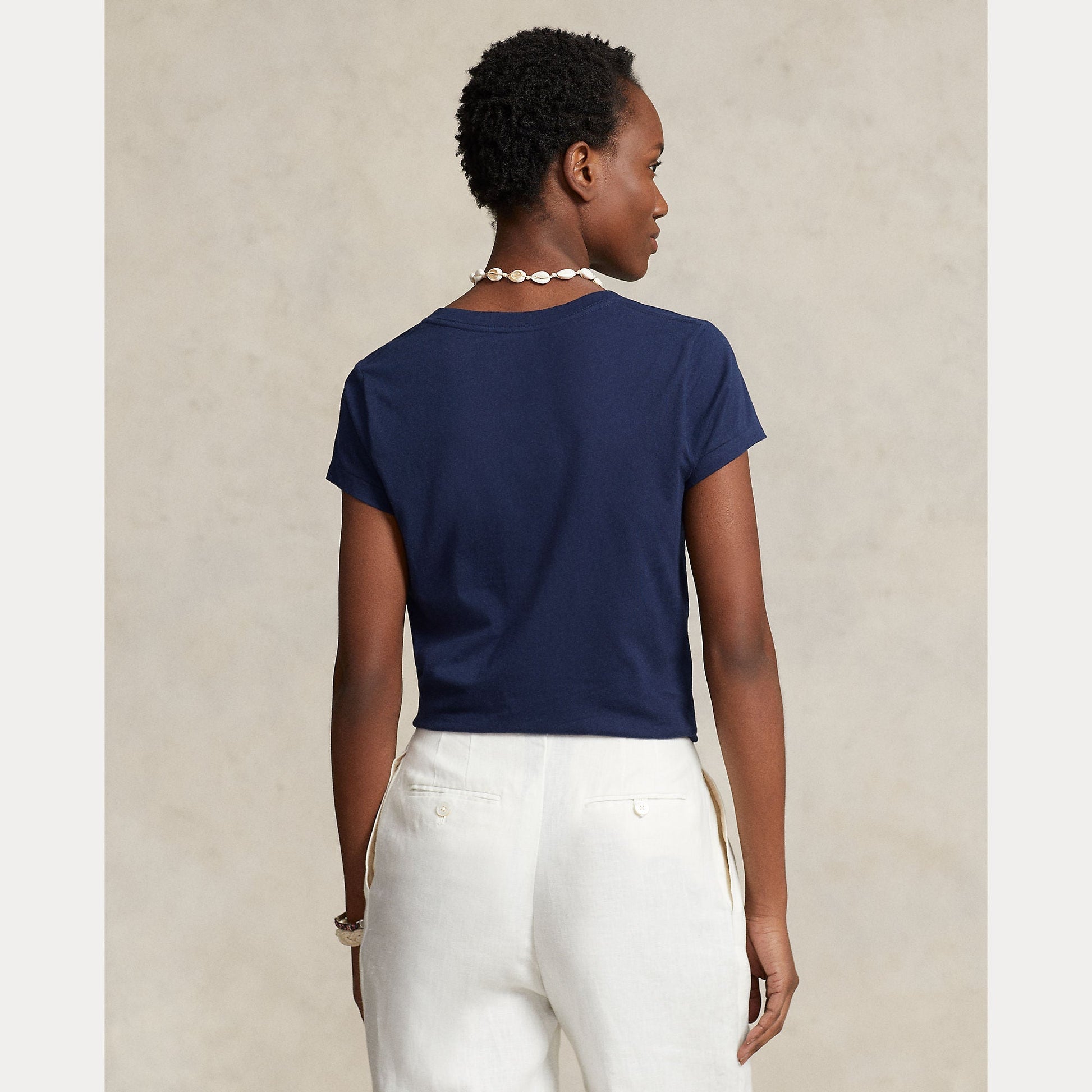 Crafted with cotton jersey that has been washed for added softness, this essential V-neck tee gets an iconic update with our meticulously embroidered Pony at the left chest.