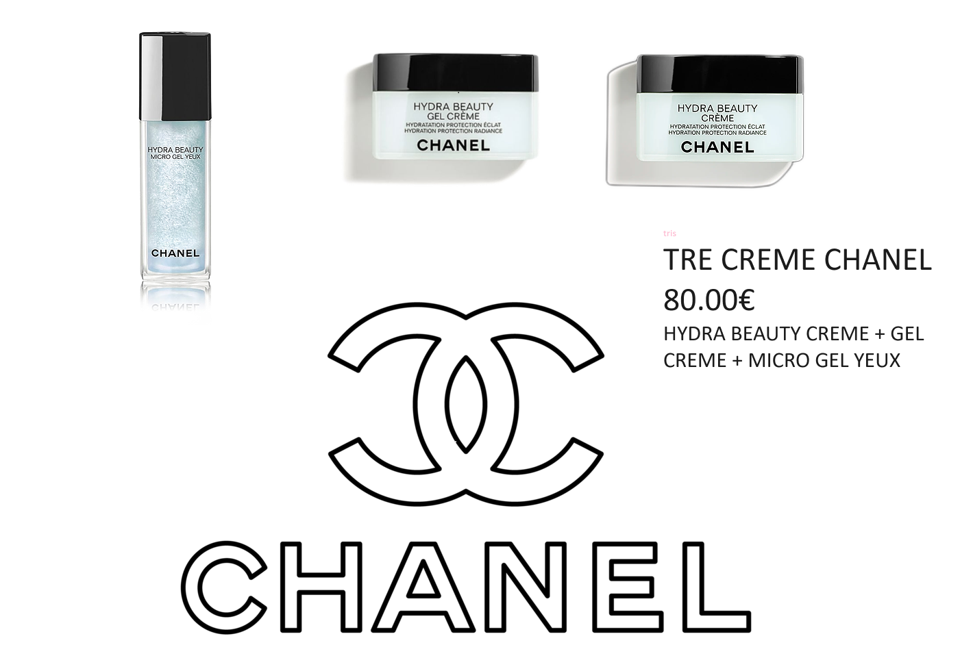 TRIS CREME CHANEL - HYDRA BEAUTY CREME 50G + GEL CREME 50G + GEL YEUX 15ML